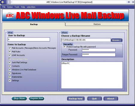 ABC Windows Live Mail Backup是一款簡單易用的軟體,可以讓你備份和恢復你的Windows