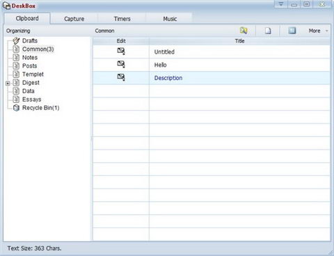 DeskBox包括經常使用的日常工作和學習的功能,例如,可以幫助你收集和管理文本,編